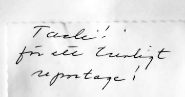 Allt var frid och fröjd. Några av männen i publiken som bodde på Servicehuset tyckte att det skulle vara can-can oftare i huset . I mitt referat tipsade jag också socialnämnden lite skämtsamt att det kanske var en idé att tänka på. Dagen efter referatet fick jag en blomma och ett litet tackkort för ett trevligt reportage. Och det var inte så ofta någon arrangör blev så nöjd. Alla var nöjda.