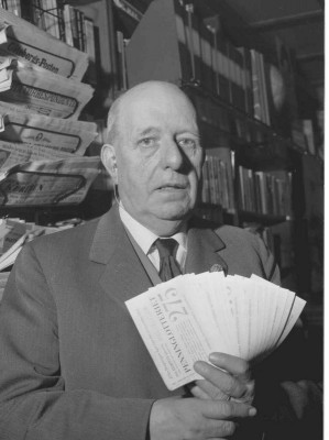 Bokhandlare Josua Larsson. I gänget över återfinns en del övriga personer som Olle Wijkström skrivit om. Anton Frendel, statsfiskal Löndborg, borgmästare Bretzner och konstnär Börje Sandelin.