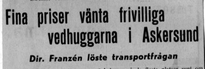 ASKERSUND. För mycket länge sedan, närmare bestämt 1947, bilades en kommitté i Askersund som skulle ordna med frivillig vedhuggning. Det var föreståndaren vid arbetsförmedlingen som organiserade det hela. Går man runt i dagens villaområden så sysslar en del just frivillig vedhuggning. Ved som ska användas för uppvärmning av villor, eller bara för lite mys pys framför brasan ruskiga höstkvällar.